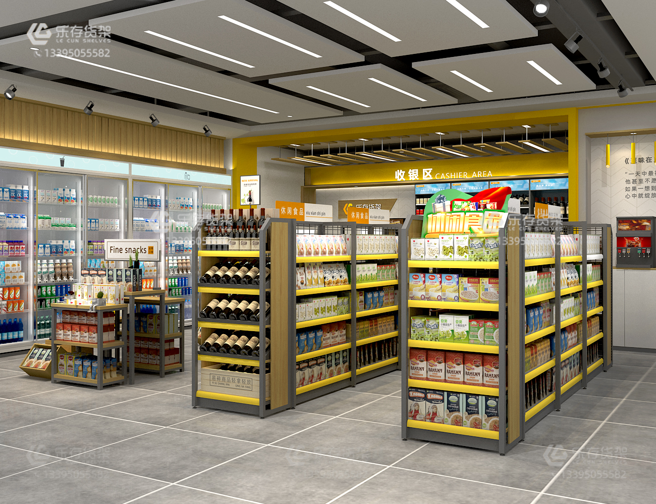 廈門便利店貨架,便利店陳列設計,便利店貨架設計,便利店貨架,便利店貨架裝修效果圖(樂存貨架)